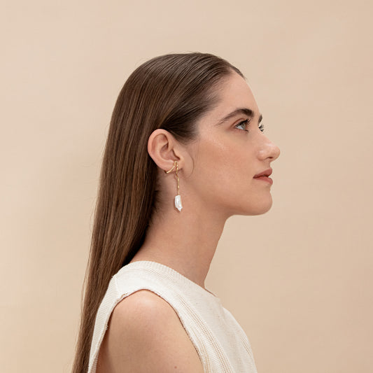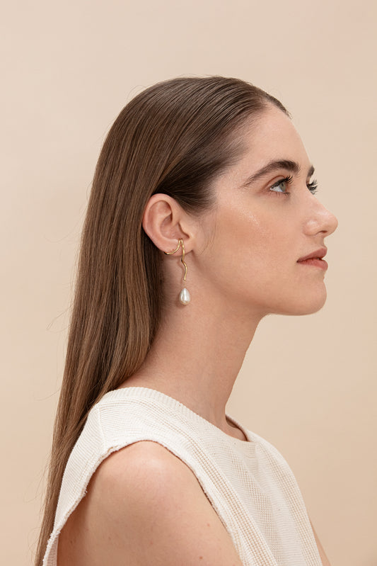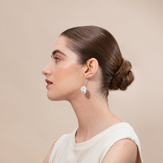 Pár pozlacených náušnic Bezier 06 s barokní perlou