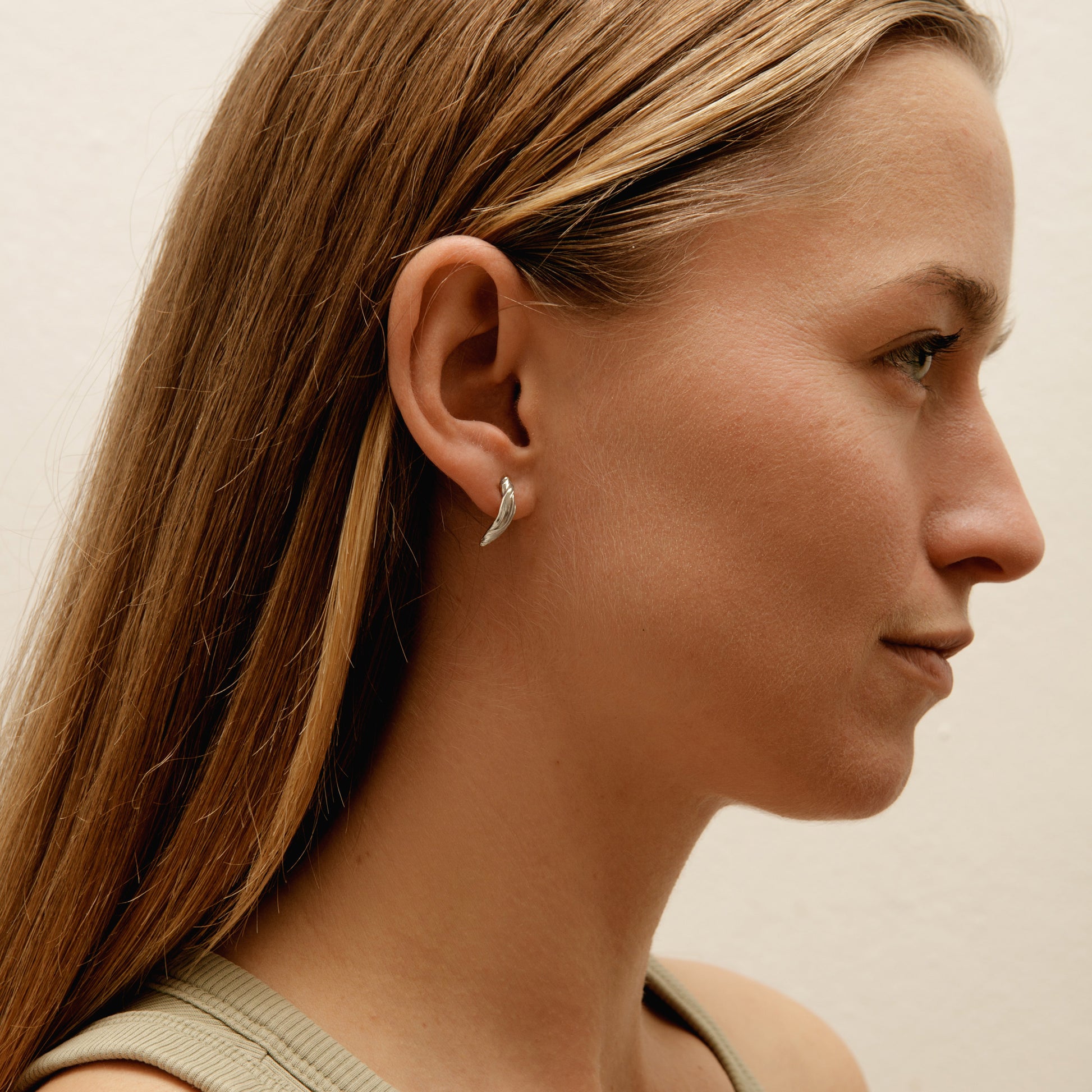 Náušnice Volute 01 zaujmou jemnou organickou texturou a tvarem připomínajícím záhyby látky. Jsou vytvořeny tradiční japonskou technikou vosku mitsuro hikime, díky níž vzniká charakteristická struktura povrchu s hedvábným leskem a měkkými liniemi. Každý pár nese stopu procesu i ruky autora.