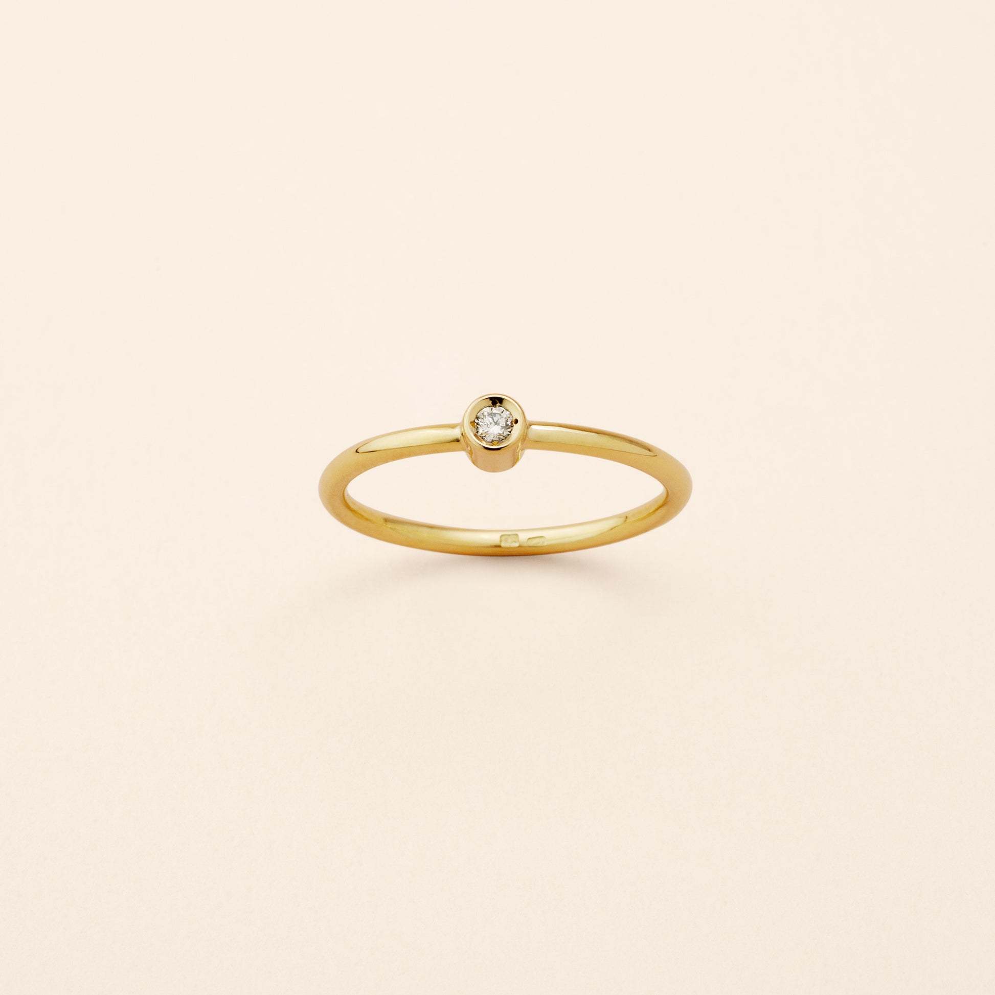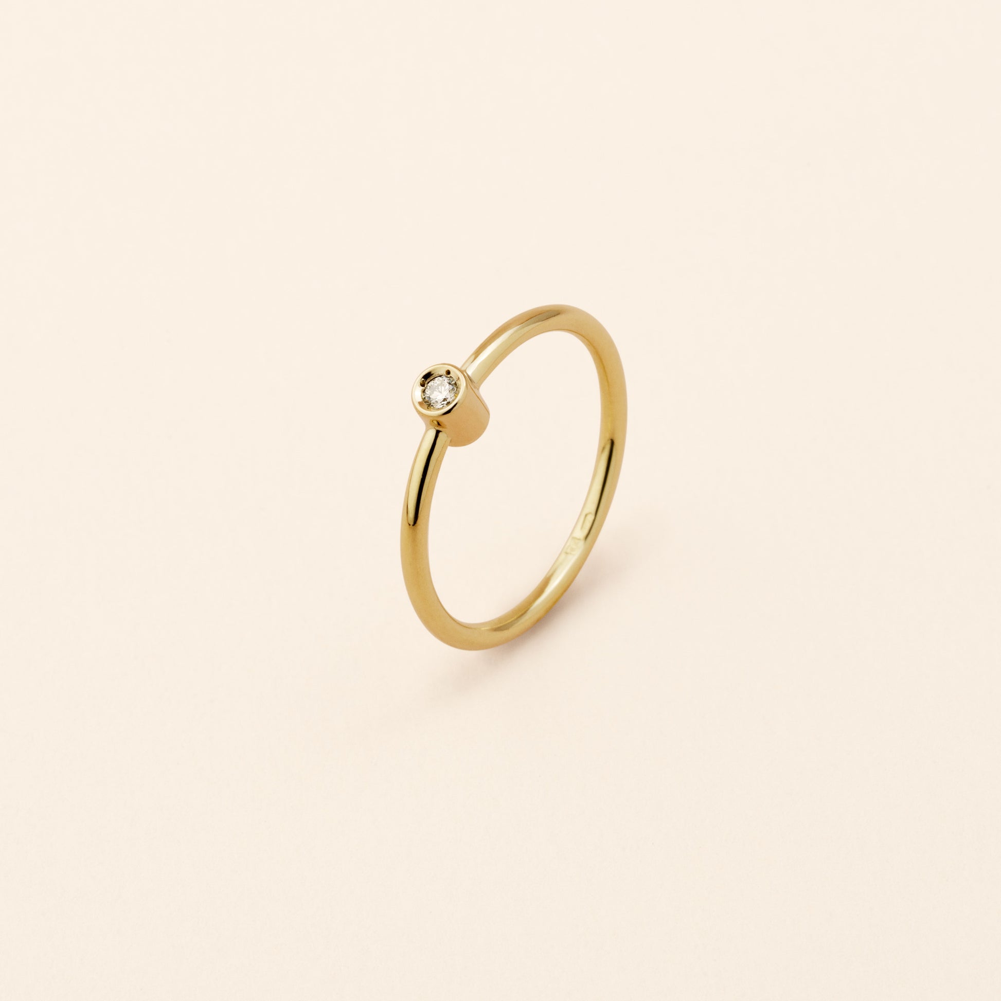 Jemný minimalistický prsten ze žlutého zlata s přírodním 2mm briliantem. Vhodný také jako zásnubní prsten.